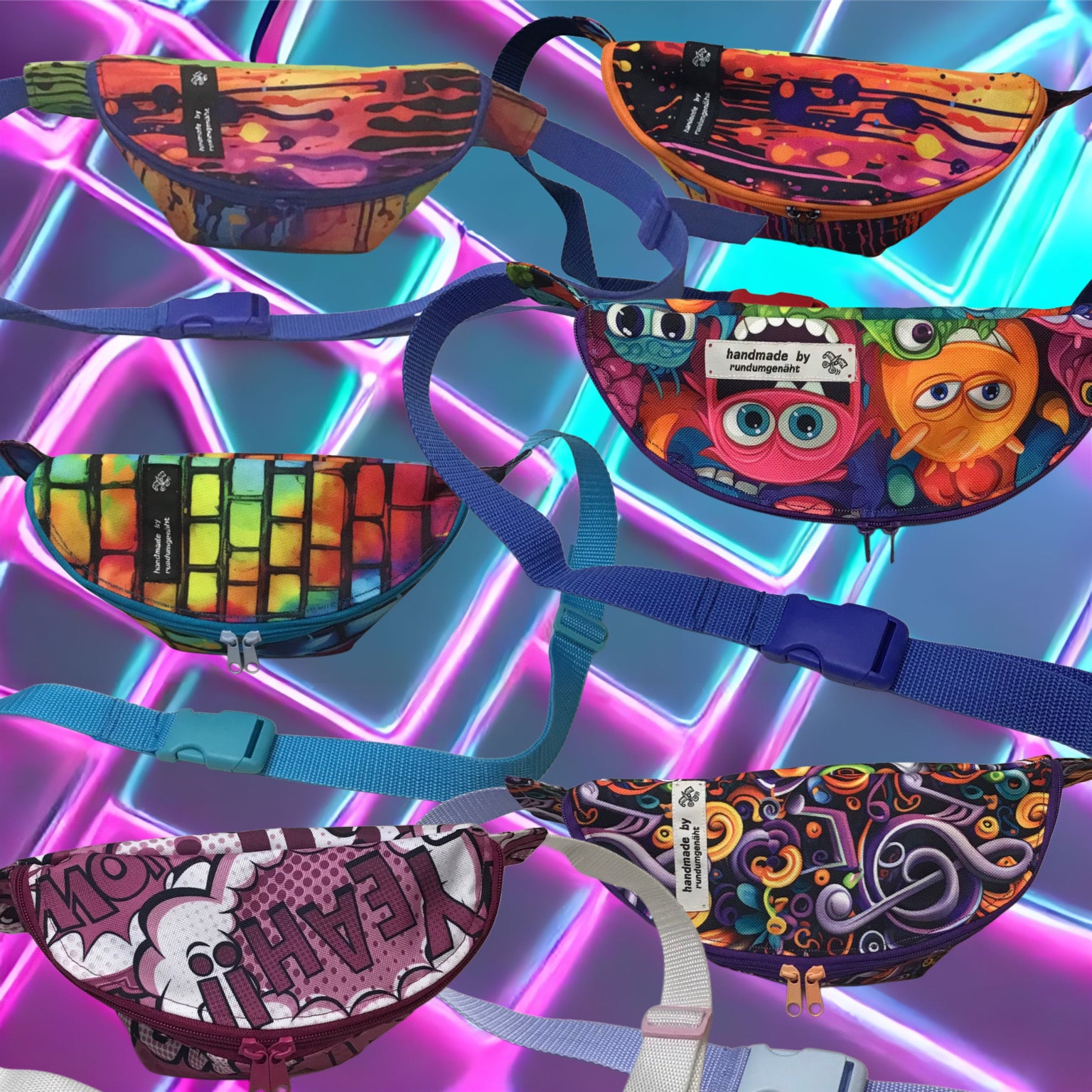 Bauchtasche aus wasserabweisendem Baumwollstoff. Der Innenstoff besteht aus schwarzem Polyestervlies. Die Tasche wird mit einem Reißverschluß und 2 Metallzippern verschlossen. Das Poyester Gurtband kann individuell verstellt werden.