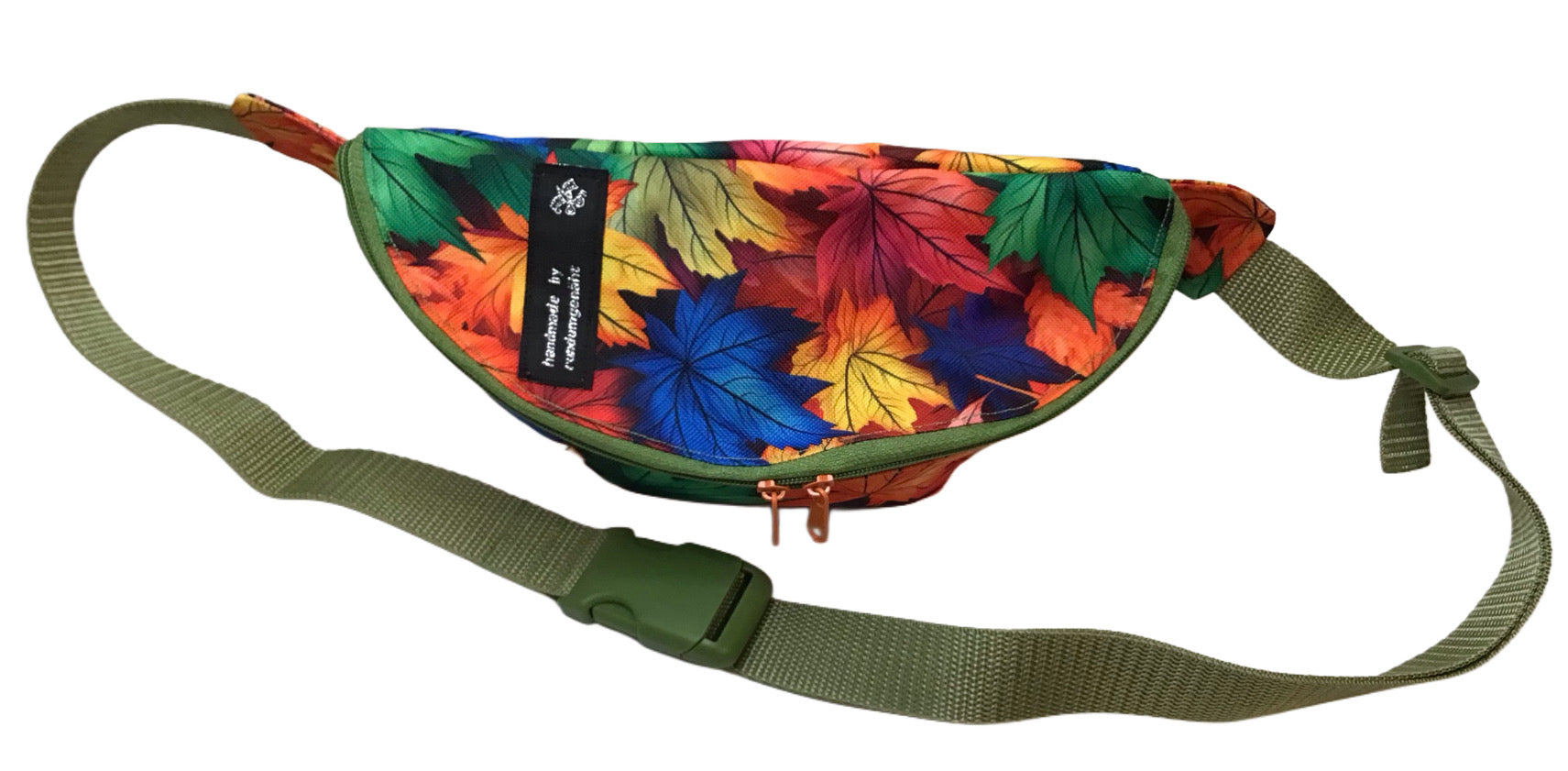 Bauchtasche aus wasserabweisendem Baumwollstoff ist handgefertigt. Der Innenstoff besteht aus weißem Polyestervlies. Die Tasche wird mit einem Reißverschluß und 2 Metallzippern verschlossen. Das Poyester Gurtband kann individuell verstellt werden.