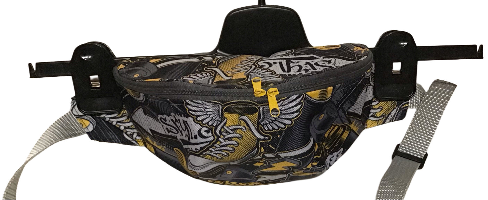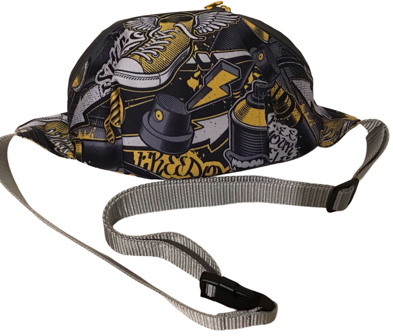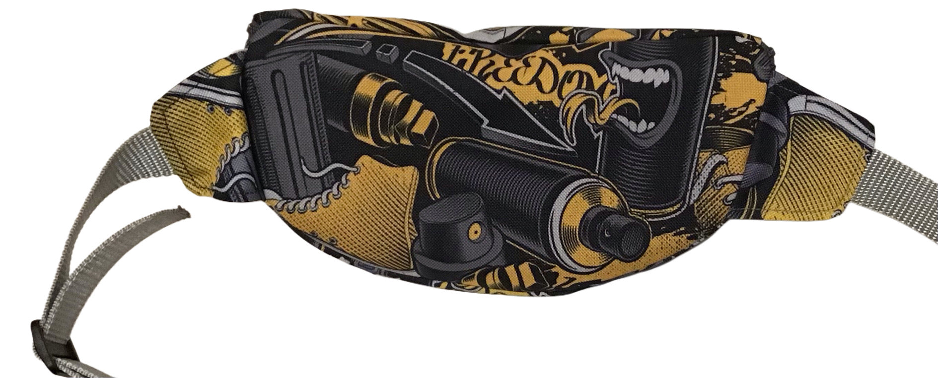 Bauchtasche aus wasserabweisendem Baumwollstoff. Der Innenstoff besteht aus schwarzem Polyestervlies. Die Tasche wird mit einem Reißverschluß und 2 Metallzippern verschlossen. Das Poyester Gurtband kann individuell verstellt werden.