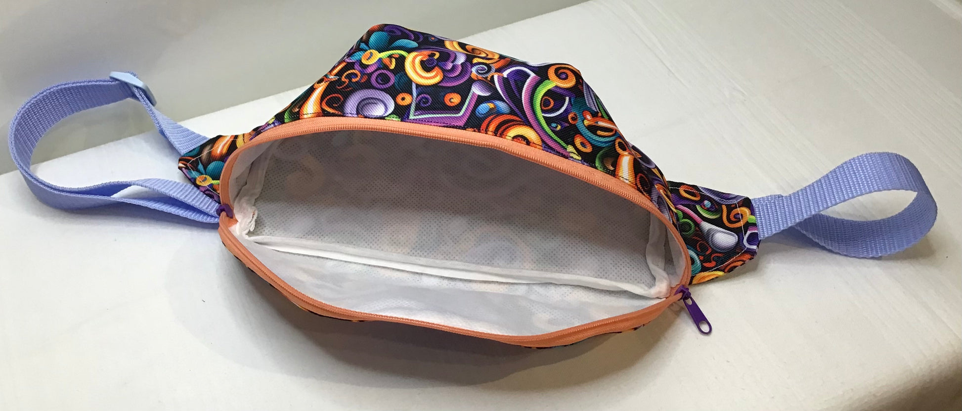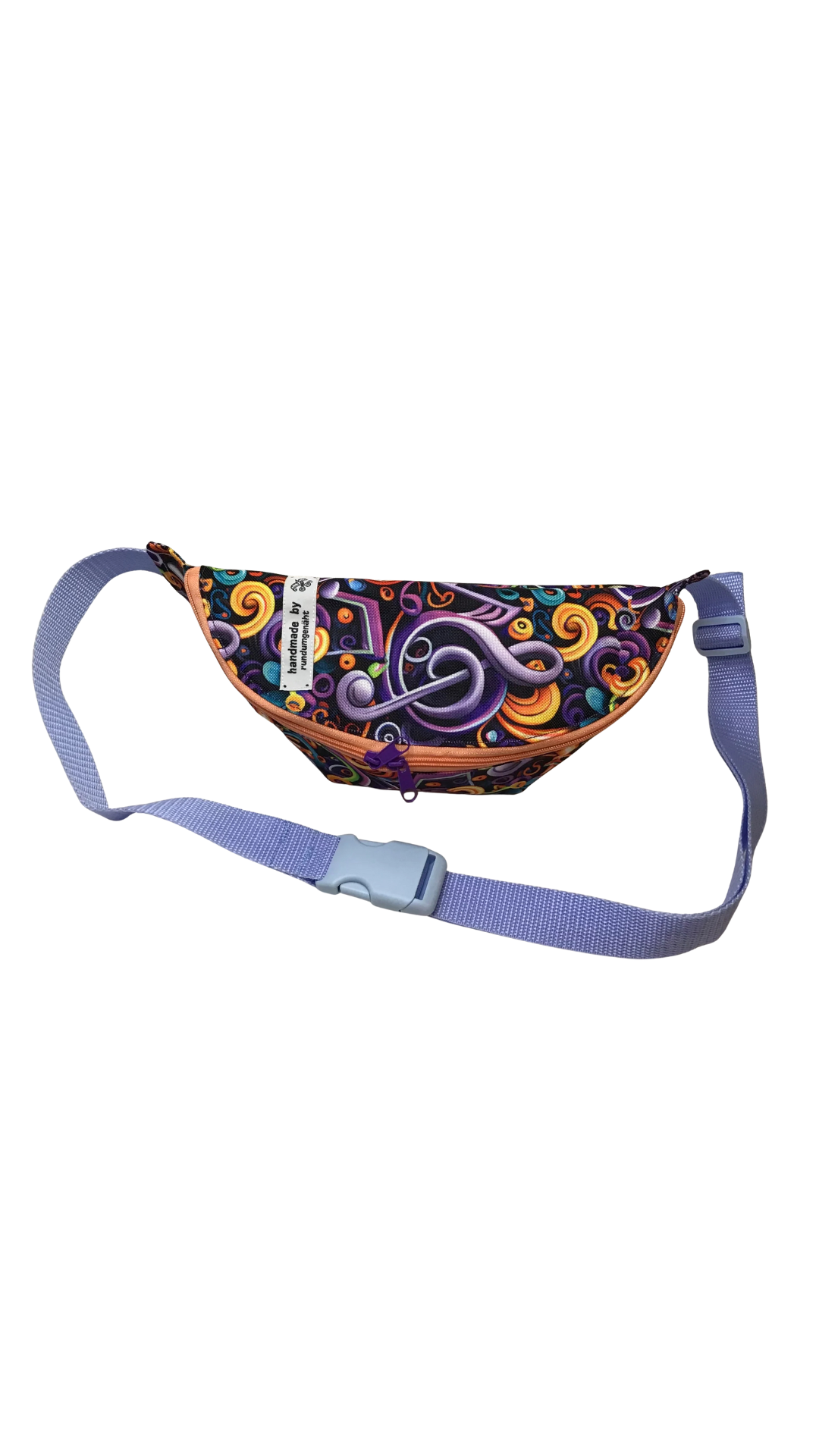 Bauchtasche aus wasserabweisendem Baumwollstoff. Der Innenstoff besteht aus schwarzem Polyestervlies. Die Tasche wird mit einem Reißverschluß und 2 Metallzippern verschlossen. Das Poyester Gurtband kann individuell verstellt werden.