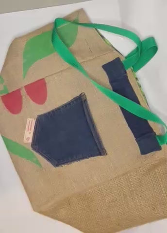 Dieser nachhaltige Upcycling-Shopper wurde handgefertigt aus einem originalen Kaffeesack und ist ein absolutes Unikat. Mit Maßen von 51 cm Breite, 35 cm Höhe und 22 cm Tiefe bietet er großzügigen Stauraum. Die 72 cm langen Träger ermöglichen bequemes Tragen über der Schulter. Im Inneren befindet sich eine praktische Tasche, und der wasserabweisende Baumwollstoff schützt zuverlässig den Inhalt. Eine umweltbewusste Wahl für den täglichen Gebrauch.